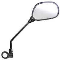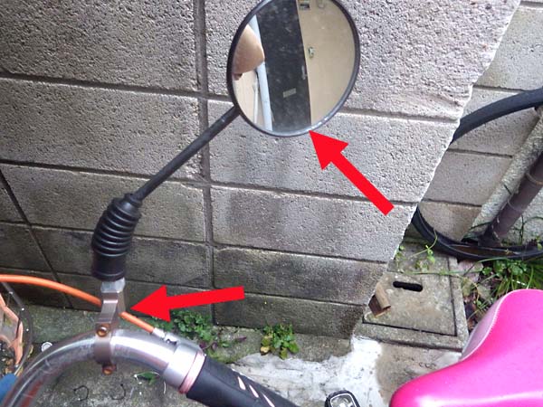 は自己防衛です。ところが,ママチャリ用のミラーってロクなモノがないんです。100円ショップのは走行中はブルブル揺れてて後ろは観えない。クランプ式のは,自転車が倒れる度に緩んできて固定できず。以下,試しまくってみましたがどれも駄目。ハンドルに傷がついただけでした。