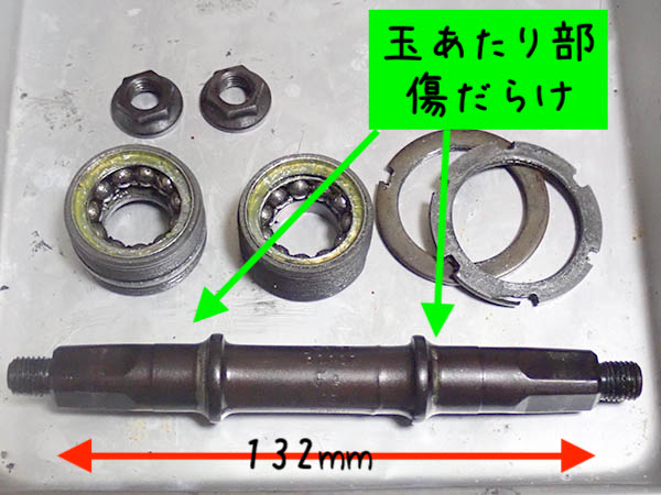 外した軸のネジ部を除く長さは,132mm で,交換する部品は軸長127mm。