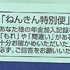 抜けた公務員時代の年金記録票を同封しようとコンビニへ。コピーし封筒に入れる際にまたも気付いたお役所仕事。特別便はA4判三つ折の長計3号封筒で来た、返信用封筒は洋形2号(A4十字四折用)。書類は新たに折り直す必要があるし折り目も増える。どちらも定形で送料は同じなんだからさ〜同じ折り目で入る封筒を選べばいいのに。人によったら三つ折の後で、長さが足りない分をさらに折るよ。ほんと、気が回らない人達だね。(10月14日) |