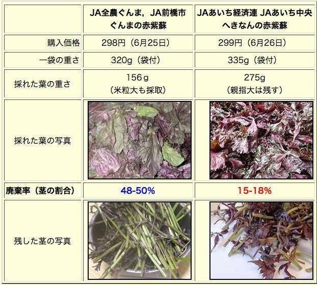 mixiの人が愛知の赤紫蘇を送ってくれたのに,2日放置しちゃって今夜は処理中。もうねーーステキに良い。3袋が群馬産10袋分はあるし,ちりめん葉もキレイ。東京以南の人はこんなステキな紫蘇を使ってるんですね。今年は群馬産が改善されてるかと1袋購入。もう二度と買わない。茎率5割=半分がゴミ。 JAぐんまの袋紫蘇が最悪 (6月6日) |