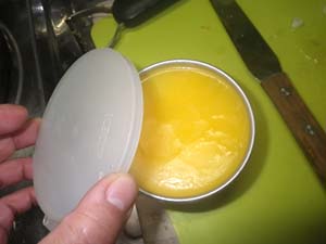 缶に入れ替えます。 この器はアルミ製氷カップ1個150円ぐらい? 家庭用かき氷のカップらしいね。 蓋があるのでバター入れには便利。 |