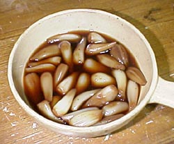 恐る恐る作ってみたら本当に美味しい。お酒のツマミって気分がよく分りました。今後は、ラッキョウ漬けを作る時にちょいとよけて煮物を作るようになりそうです。煮る時間はそれほど掛かりませんし、お勧めです。私は酒のツマミなので、唐辛子(粉でも丸でも)を加えて、少しピリピリを楽しみました。