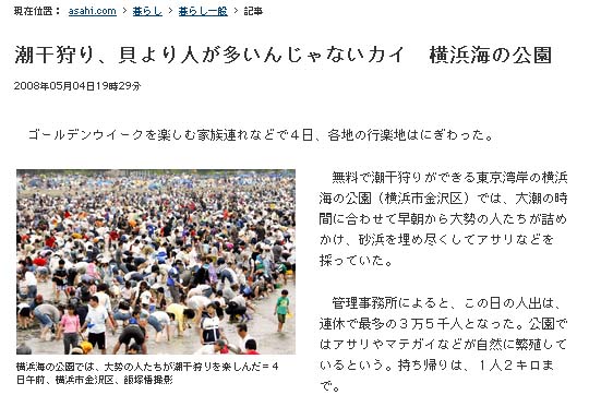 5月の連休はどこかに潮回りのいい日が入り、潮干狩りの人出もピークです。特に無料な場所は大混雑&大渋滞は免れません。有料の場所でさえ、関東では渋滞は激しいです。どうしても!と言う場合を除いて5月連休の潮干狩りは避けたほうがいいでしょう。→