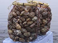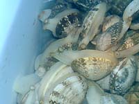 | 5月22日 くもり | 会社の潮干狩り 9:00-11:00 久津間海岸 | 友人家族を誘って。3歳、4歳、6歳(小学1年生)混じりの潮干狩りらしいメンバー。子供がいると潮干狩りもサマになるが、子供はすぐ飽きちゃう。(^^;) かなり肌寒い日で子供じゃ辛かったろうなぁ。。潮干狩り初体験でも楽しんでくれたようで何より。今晩は、宴会なので前回と同じ4.2kgをお持ち帰り。しかし、吸水管を伸ばすあさり貝は可愛い。っても食べちゃうんですけどね。気温が低いのですごく元気一杯〔翌日の撮影)。 |