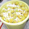 | 3L | 4kg | 3Lになると、4kgでバケツ一杯。2003年の昆布梅はこれで4kg漬けてみた。容器ぎりぎりだが、重石がかかると半分位になった。 | ||