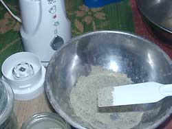 佐々木さんから教わって、ずっと前から欲しかったミルサー、、ちと贅沢かな?と思ったけど、2005年の夏、うんうん、昆布茶旨そうだし、ユカリも出来るし(すり鉢使うと、なんとなくホコリ臭い=すりこぎの粉 んですよね)。たこ焼きのカツオ粉もすぐ出来るかな。などと電化製品を増やすのに言い訳しながら購入。けちって2480円で買ったら中国製(しまった、買ってから気付いた国産好きな私)、使いそうもないお茶挽き機能あったり、使うかも知れないミキサー機能あったり、、まぁ、いいでしょ。
