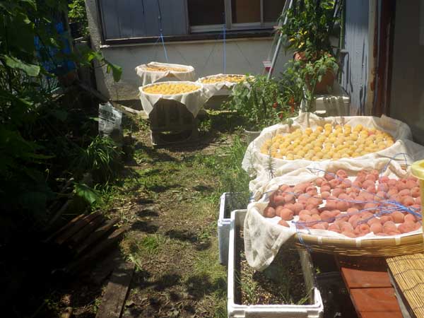 今年の湿気は半端無く,我が家の湿度は100%なんて日が続きました。帰宅したらフローリングの床一面に青カビ,,なんて日もありました。怖くて赤紫蘇作業も梅のバケツも開けず。毎日,帰宅後に床の拭き掃除な日々。減塩してないとは言え,少し怖かったです。小梅12%にしなくてよかった。7月11日にポカリと晴れましたが,昨日も怪しい日だったので,天気図をチェックしてから土用干開始。