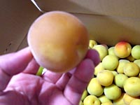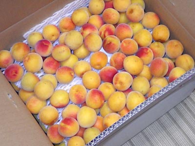 やはり朝に受け取るのと夕方だと梅のダメージはかなり違います。生梅の受取りは,なるべく近くに着いたらすぐに受け取るのがいいですね。今日は朝には着いていたのに一日置いて夕方でしたから,やはり熟梅は,時間との勝負。 上の落ち梅は全部OKで,下の木成り梅は,潰れちゃっているのが4個,仕分けして漬けなきゃ,, ってのが,3個。。他はサイズ混合でパズルの様に楽しみます。 |