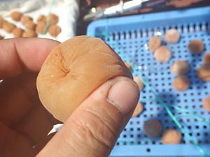 | 潰れちゃっているのが4個+仕分けして漬ける3個=合計7個は,袋漬けです。 | |