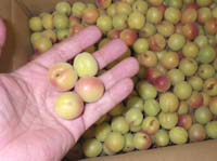 昨年にmixiで知り合った梅農家さんからメールで,最後の出荷の小梅を漬けませんか?とメールをもらって,喜んで!と返事して送って頂きました。 昨年の完熟南高梅はすんごくビックリする出来だったので,小梅も楽しみです。和歌山の梅農家さんより小梅が5月24日夜に届きました。 開いてビックリ,,私はこんなに綺麗な小梅は観たこと無い。 (いつも安物を使うからか???) でもって,むせる程のあの梅の香り。。ちっこい癖に生意気だ。 紅王 小梅 2LとLの混じり,4kg箱の写真です。![]() |