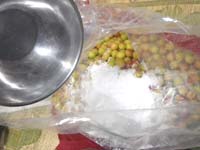 この小梅,もしかして選別しているんだろうか・・・八百屋で買った小梅のロス率ったら1,2割なんて時もあるけど,4kgでたった3個(その3個だっていつもなら漬けちゃう合格小梅)・・・後で聞いたら何度も選別しているんだそうだ。ロス3個すいませんとか言うけど,劇的に少ないけどね。 ざばざば洗う。綺麗だな〜〜〜。ロス無いのでほぼ4000g,塩を測る。。実に適当なんだけど, 沖縄の塩じゃ足りないので瀬戸の塩もちと追加。。18%でいいや。 小梅の水分を拭きとってしばし乾燥。 |